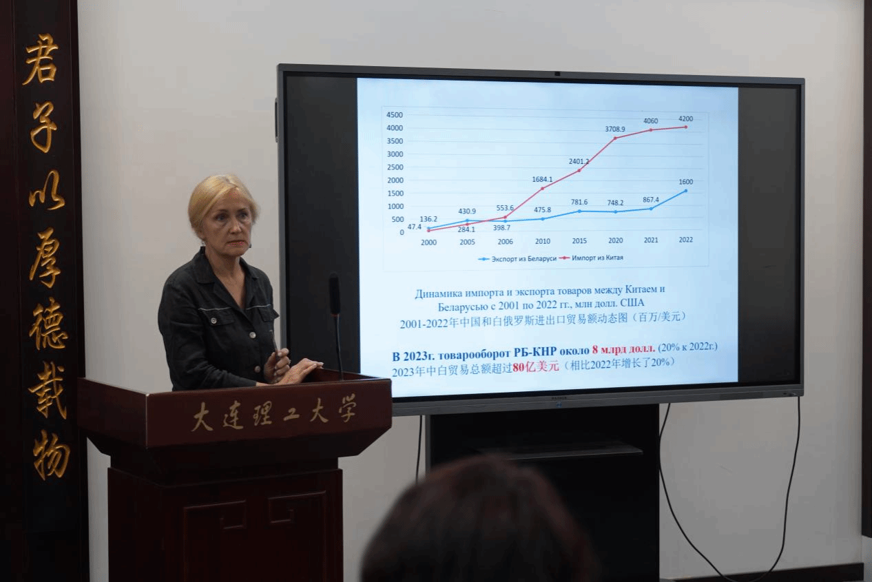 2024年6月7日下午,大连理工大学独联体国家研究中心、白俄罗斯研究中心和国际教育学院主办的国别区域研究系列讲座第十期成功开讲。本期邀请到白俄罗斯国立经济大学两位专家:白俄罗斯国立经济大学国际贸易教研室主任加琳娜·图尔班和国际商务交流学院院长尤利娅·莎夫鲁克做客国别讲堂。独联体国家研究中心、白俄罗斯研究中心主任郭淑红教授主持,中白学院副院长、白俄罗斯研究中心白方主任吉尼斯·马尔梅什致辞。国际教育学院、中白学院、经济管理学院、人文学院等师生参加。